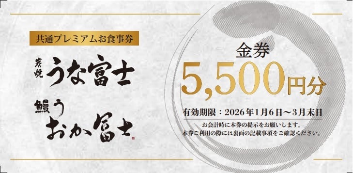 共通プレミアムお食事券(炭焼 うな富士/鰻う おか冨士)